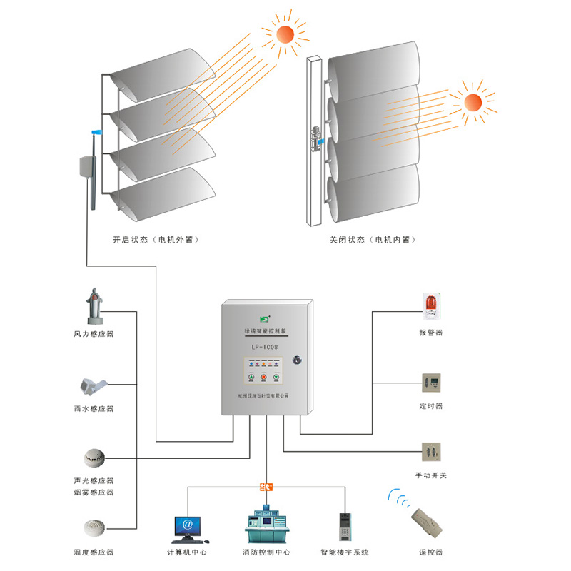 綠牌消防排煙控制系統(tǒng),可根據(jù)光線強(qiáng)弱、風(fēng)向變化、雨量大小、煙霧濃度、溫度高低等自動(dòng)調(diào)節(jié)百葉角度,可實(shí)現(xiàn)通過(guò)網(wǎng)絡(luò)、電話多層次立體控制。 在不同季節(jié)、時(shí)間為您提供最佳的室內(nèi)工作、生活環(huán)境。